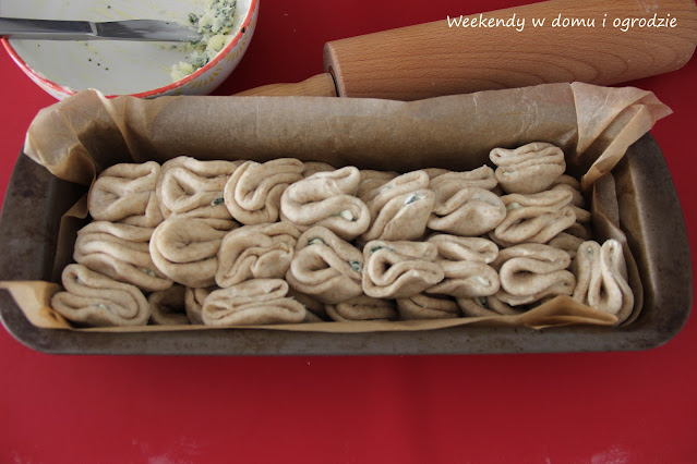 11. Krążki z masłem estragonowym układać ciasno w keksówce w dwóch warstwach.